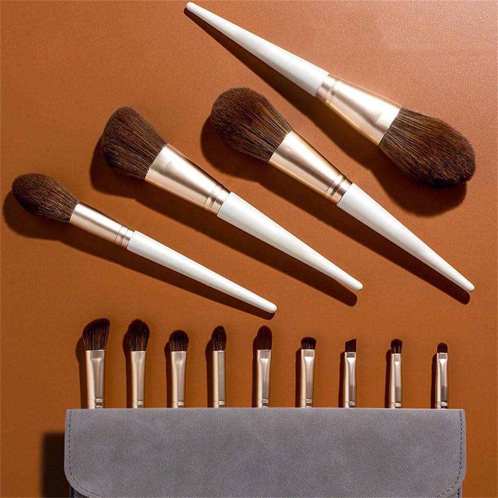 Soft synthetic bristles, aluminum ferrules, and wooden handles, easy to hold and control while applying makeup