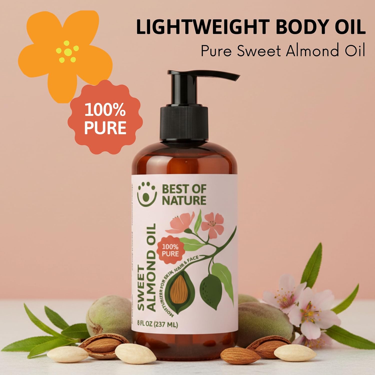 Best of Nature 100% Pure Sweet Almond Oil – Moisturizing Massage & Body Oil, Unscented for Hair, Skin, Face, Soap Making, Aromatherapy, Ideal Carrier for Essential Oils, 5 Gallon Pail (640 fl oz)