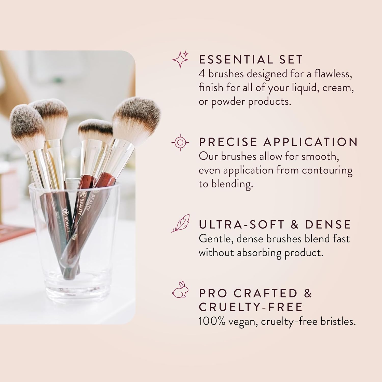 BK BEAUTY Essentials Face Brush Set (4PC), 100% Cruelty-free, Vegan, Softest Makeup Brush Set with 4 Face Brushes