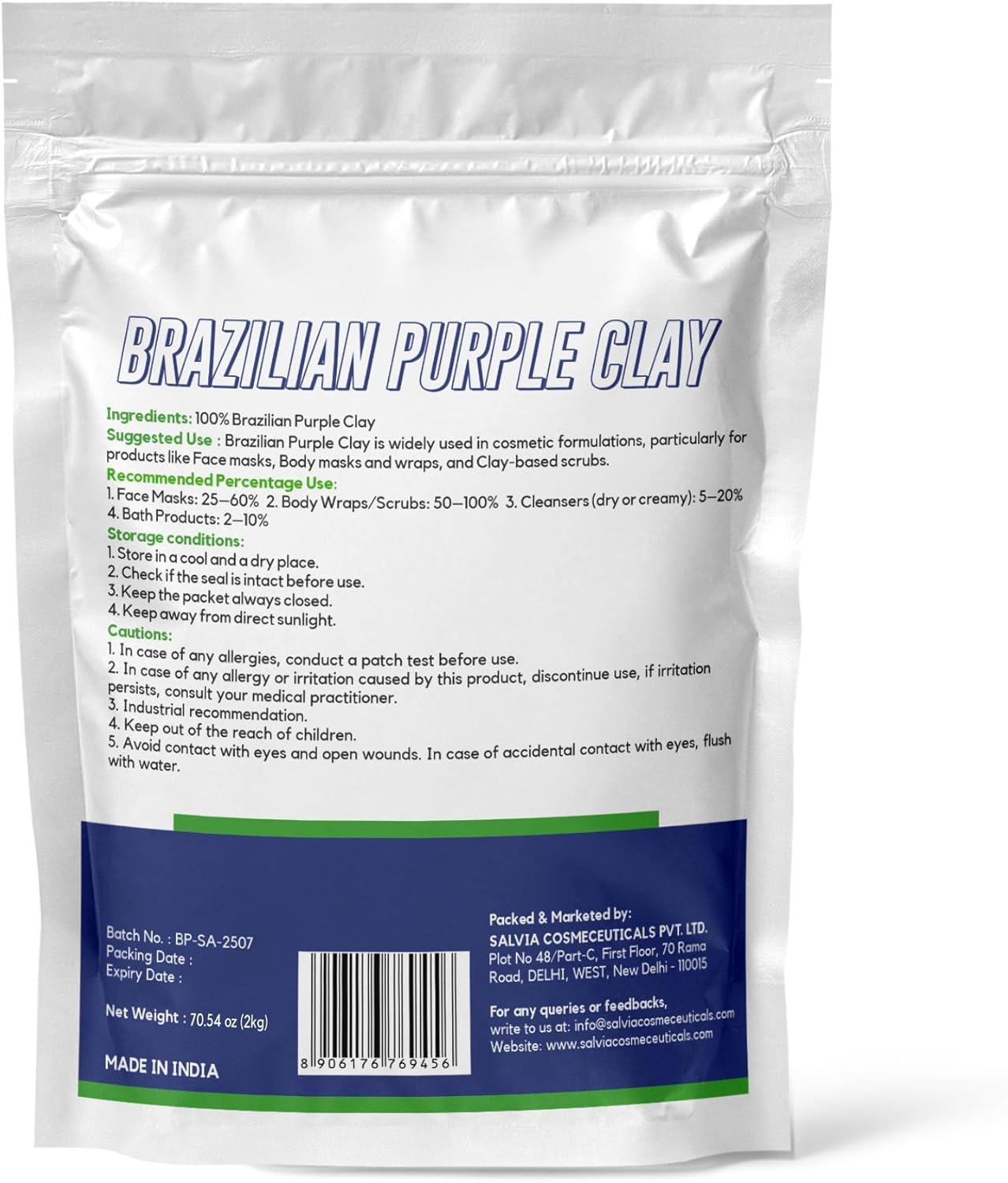 Brazilian Purple Clay – Pure Natural Cosmetic Grade | Ideal for DIY Face Masks, Soaps, Scrubs & Cosmetic Formulations | 2 kg (70.54 oz)