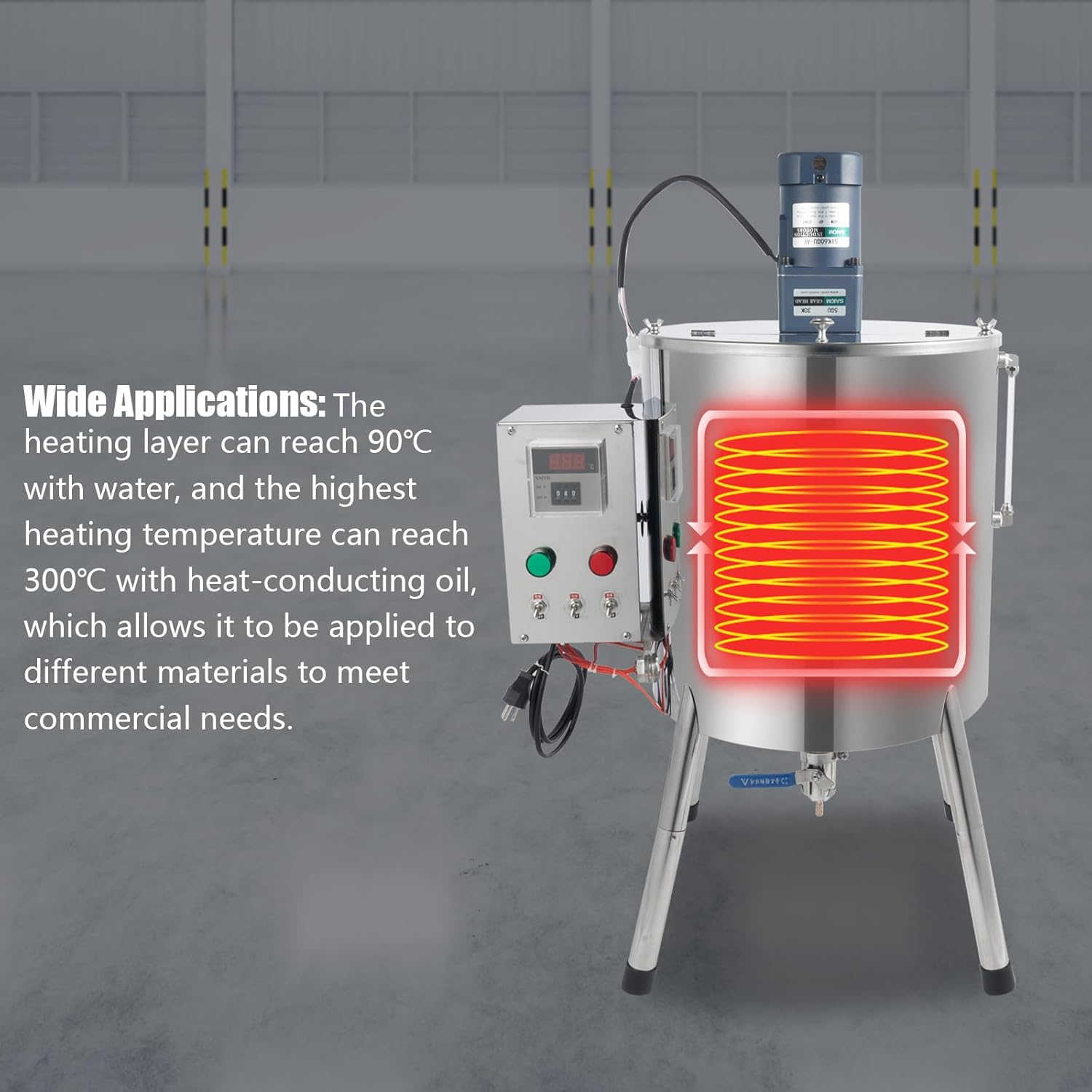 Wide Range of Application: The heating layer can reach 90℃ with water, and the maximum heating temperature can reach 300℃ with heat-conducting oil, which can be applied to different materials to meet commercial needs.