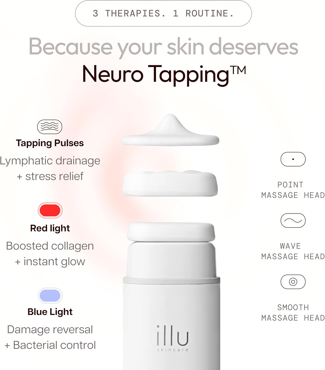 Lift, Sculpt & Define Your Skin at Home: Transform your skincare routine with the illu facial massager, designed to visibly contour, firm, and rejuvenate your skin using advanced Neuro Tapping and Red & Blue Light Therapies. Experience lifted cheeks, smoother jawlines, and a more radiant complexion—no spa visit required.