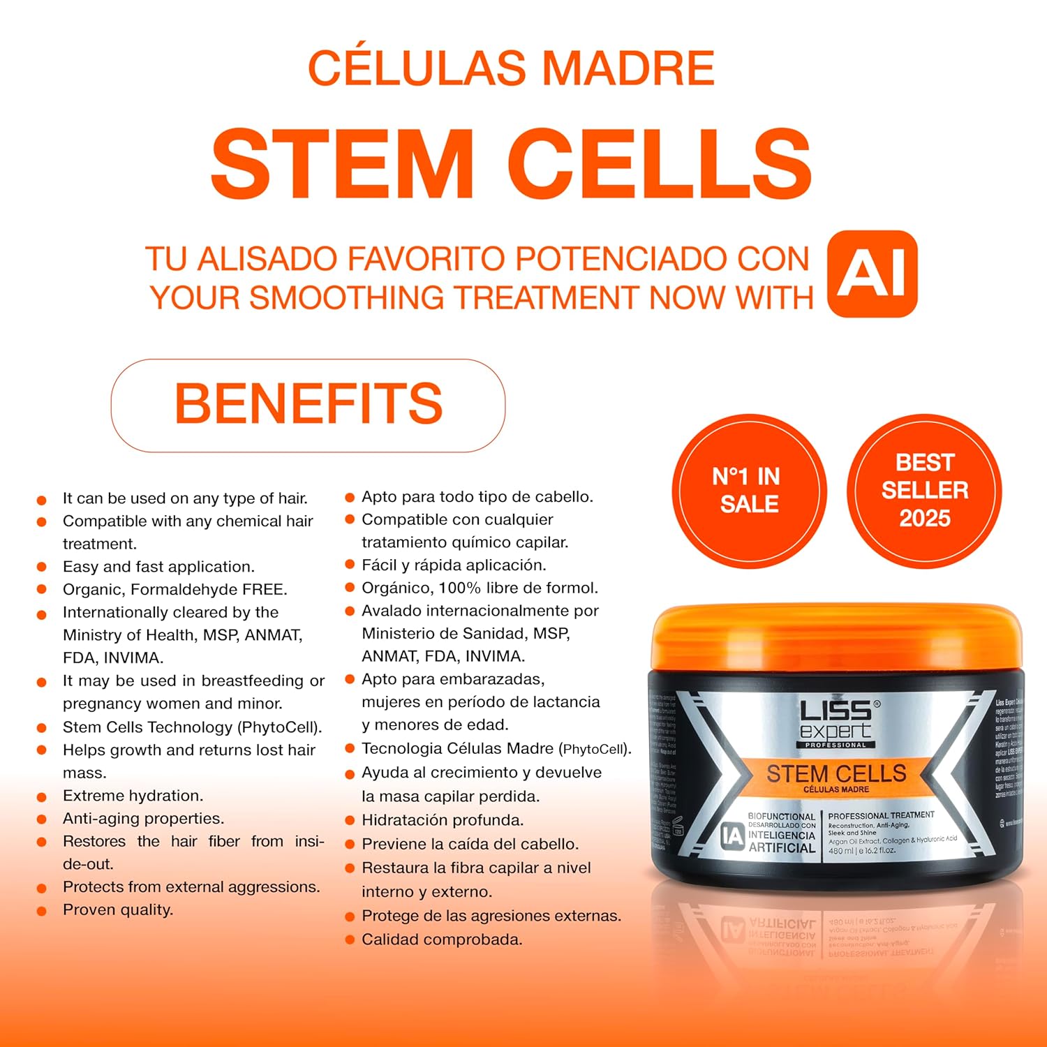 Liss Expert Stem Cells Smoothing Treatment 16 oz (LONG HAIR ) and Magic AI Mask, 8.45 oz Set Hyaluronic Acid, Collagen, Argan Oil, Keratin and Stem Cells plus our DIVINE OIL