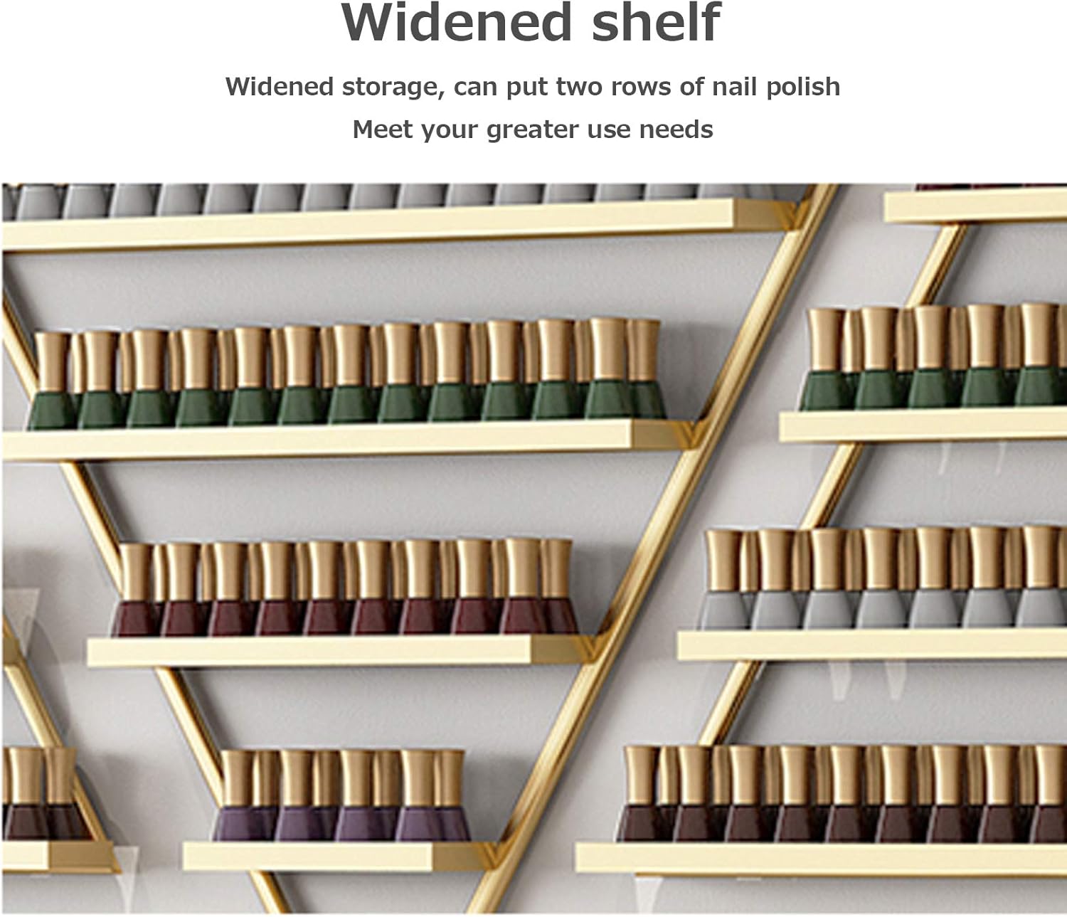 Indestructible and Long-Lasting Metal Nail Polish Wall Rack: the Whole Wall-Mounted Nail Polish Wall Rack is Made of a Solid Metal Frame, Which is Unbreakable; the Surface is Smooth and Bright, with Good Hand Feeling, Without Burrs; Durable Environmentally Friendly Baking Varnish Can Be Used for a Long Time, is Not Easy to Rust, Scratch-Resistant,Y and Safe; Fashionable, High-End, Can Match Any Decoration or Design Concept;
