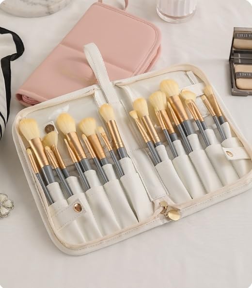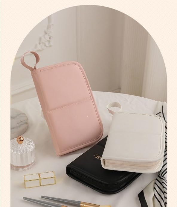PU Makeup Brush Storage Bag Tool Eyebrow Pencil Tool Bag Foldable Travel Makeup Brush Bag(D)